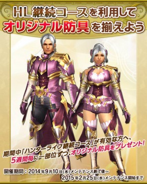 ハンターライフ継続コースでオリジナル防具をプレゼント!
