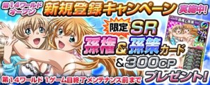 「第14ワールド」で頭首データの作成を行い、チュートリアルをクリアすると、No.3209SR「孫権&孫策」スペシャルカードと、すぐに使える300CPをプレゼントいたします!