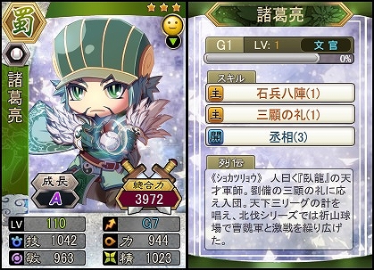 | G7 | 丞相(3) | 試合開始時、味方全員の全能力が3%上昇。試合終了まで持続。 |