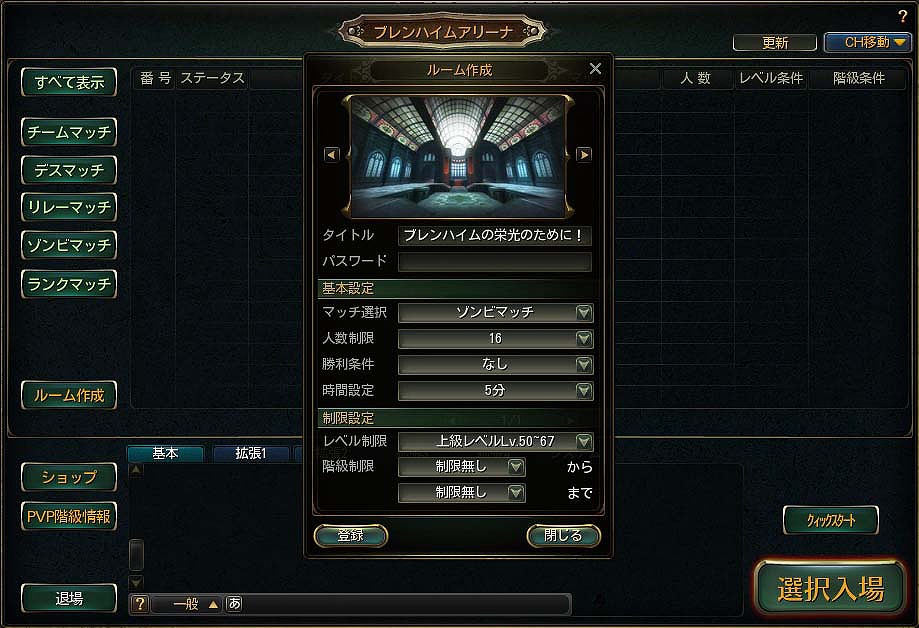 ブレンハイムアリーナの「マッチ選択」に「ゾンビマッチ」が追加されます。