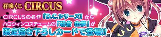 人気ブランド・CIRCUSの「D.C.」シリーズから限定描き下ろしカード「朝倉由夢」入りの召喚くじが期間限定で登場します。