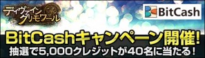 「ディヴァイン・グリモワール2周年記念!BitCashキャンペーン」を開催いたします。期間中にBitCashを使用して5,000円以上チャージすると、すぐに貰える!BitCash 5,000クレジットを抽選で40名にプレゼント!