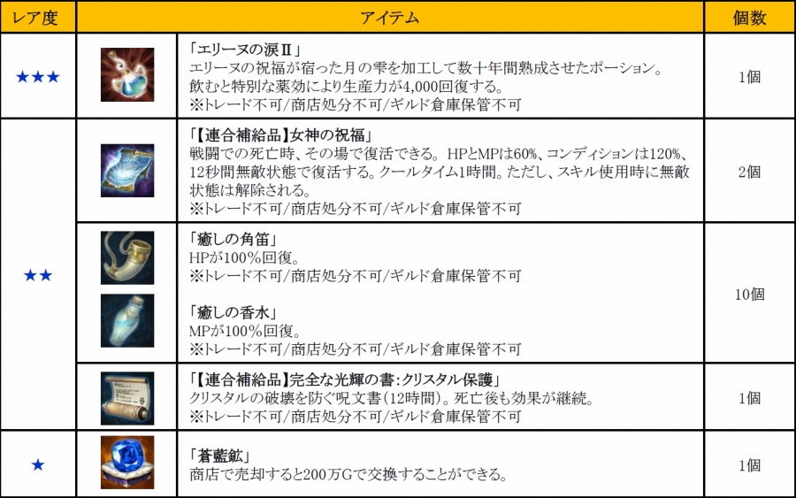 ※癒しの角笛、癒しの香水は2種類のアイテムが1つのセットとなっております。