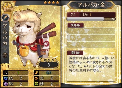 一定確率で☆4アルパカ・金が出現します。