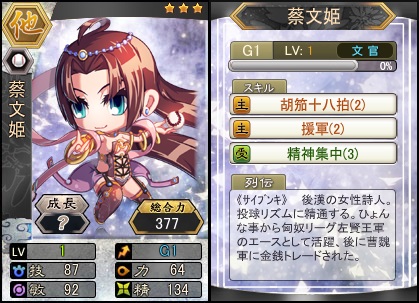 一定確率で☆3蔡文姫が出現します。