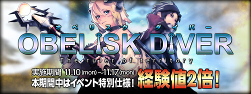 11月10日定期メンテナンス終了後から11月17日(月)定期メンテナンス開始前までの期間中、イベント「オベリスクダイバー ~The ruler of territory~」を開催中です。