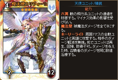 期間中に「五天使パック」から「煌天使エリヴィーラ」「偉大な翼ルオ」「黒翼イズレイル」「刹那の双翼リュカ」「輪廻の双翼ユイナ」の五天使カードのうちいずれか1枚以上入手された方の中から抽選で20名様に「煌天使エリヴィーラ(★5)」をプレゼントいたします。
