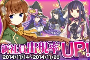 「アレンカ・カレル」(アーチャー系)、「キョウカ・ニオ」(ローニン系)、「ローザ・ルウェリン」(クレリック系)、「クラーラ・イェイエル」(マジシャン系)、個性豊かな4人の社員が追加されます。さらに、今回のアップデートでは期間限定で新社員の出現率がアップします!(期間は2014年11月14日メンテナンス後から2014年11月20日予定のメンテナンスまで)毎日貰える履歴書に新しい社員からの履歴書が入っていることもあります。