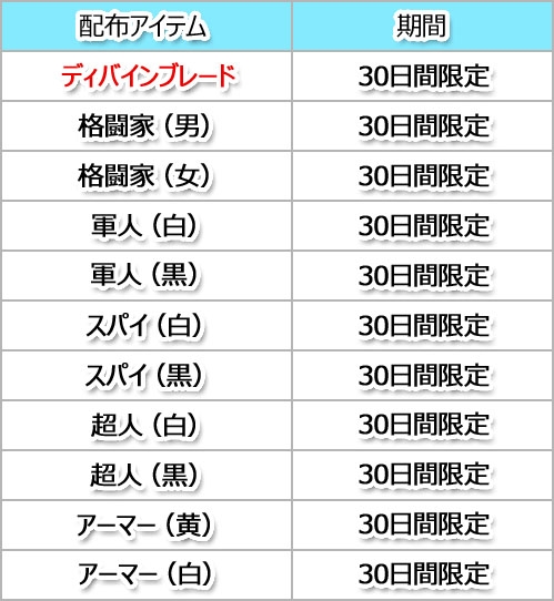 ※受け取ってから30日経過後、当キャンペーンの期限付きアイテムが使用できなくなります。
