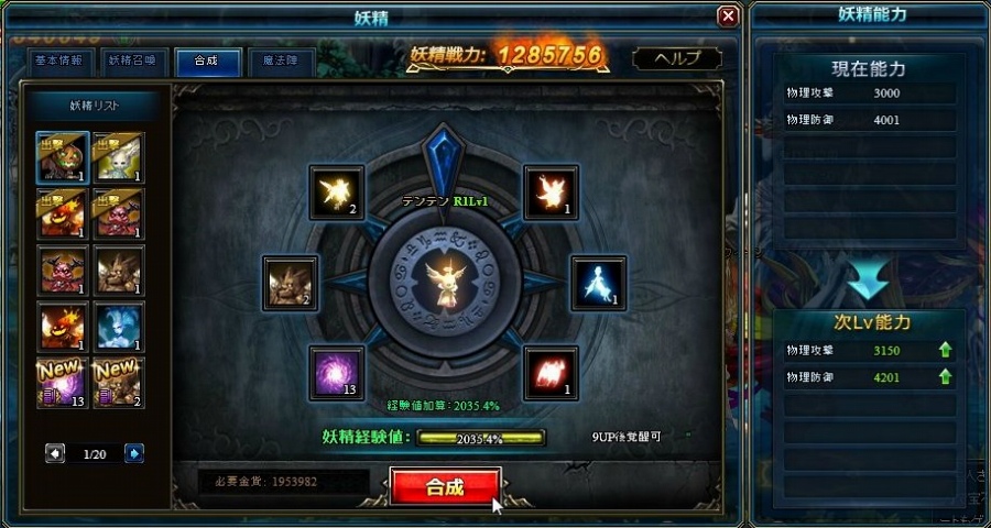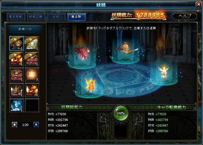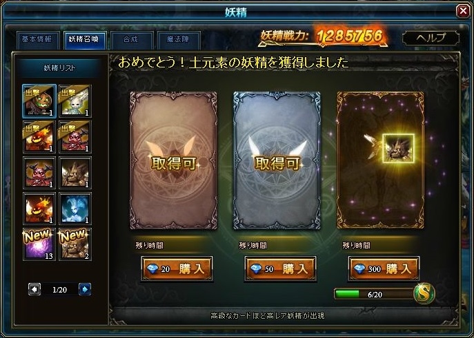 妖精システムに、「妖精召喚」「合成」「魔法陣」の3機能が新しく追加されます。