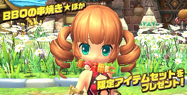 対象期間中にゲームにログインされた方全員に、もれなく限定アバター「BBQの串焼き★」ほか、冒険に役立つキャンペーン限定のアイテムがセットになった「お腹いっぱいセット」をプレゼントいたします。かわいいアイテムでキャラクターを飾って大きなボスモンスターを討伐しに行こう!