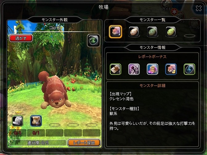 モンスター牧場は、モンスターのタマゴやホイッスルと呼ばれるアイテムを牧場で育てることで、さまざまなボーナスアイテムやダンスモーション、「モンスターソウル」と呼ばれるスキルなどを習得できる新システムです。多種多様なモンスターを育ててキャラクターをどんどん強化していきましょう!