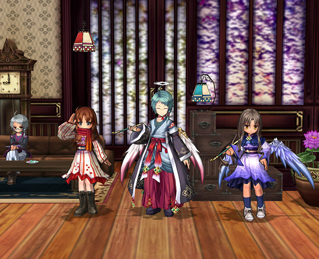 また、「レトロモダン風の着物(茜)」「和柄の襟巻(赤)」「ハイカラ編み上げ靴(茶)」でちょっとレトロな雰囲気に決めてみたり「装飾付の羽(白)」や「煌びやかな和装(白藍)」「煌びやかな袴(赤)」「キセル」で御魂・ヒスイとおそろいに決めてみたりとワクワクする衣装も盛りだくさん!