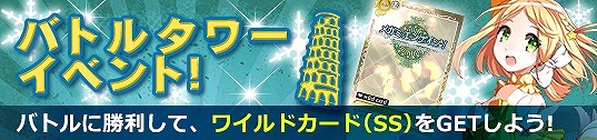 イベント期間中、バトルタワーの勝利数に応じて「ワイルドカード」をプレゼントします。また、参加者全員に「ルビーの欠片」を10個プレゼントします。