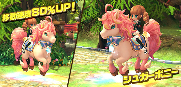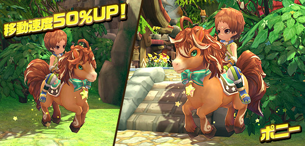 駆け抜けた道が虹色に輝くなんともメルヘンな乗り物「ポニー」が登場しました。あわせてキャラクターをかわいく飾る「ウサ耳」と「ロリポップロッド」もお見逃しなく!