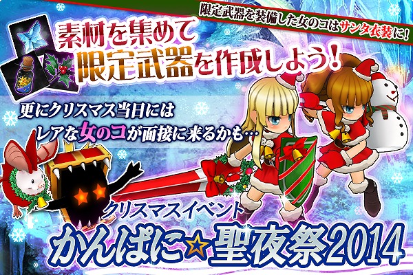 12月12日(金)メンテナンス後より12月26日(金)メンテナンスまで、クリスマスイベント「かんぱに☆聖夜祭2014」が開催されます。