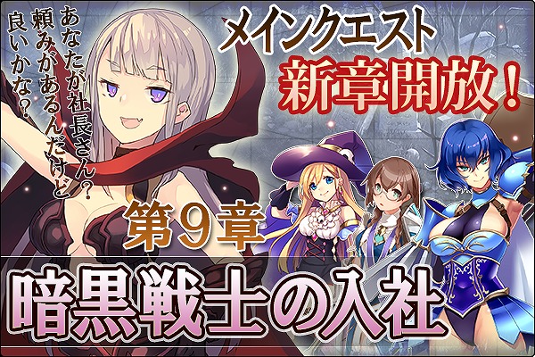 新マップ「火山」「墓地」「闘技場」の追加をはじめ、新モンスターの追加、新装備の追加など、盛り沢山の内容です。第9章のラストではついに社長が元の世界へ還る転移の方法が明らかになります。