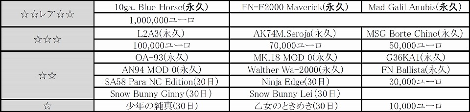 永久武器「10ga. Blue Horse」「FN-F2000 Maverick」「Mad Galil Anubis」をはじめ、厳選された豪華アイテムの中からランダムで1つ入手することができます。何が出るかは入力してからのお楽しみです。ぜひ、明日から年末年始は”AVA友”と一緒に対象ネットカフェに足を運んでいただき、アイテムを手に入れてください。