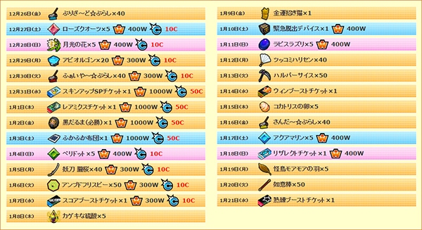 12月26日(金)より、豪華なアイテムが毎日貰える「お正月豪華ログインキャンペーン」を実施いたします。キャンペーン期間中にログインしていただいたプレイヤーの方にアイテムをプレゼントいたします。
