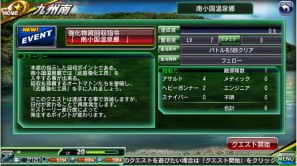 九州南地方 「南小国温泉郷」 ・九州北地方 「嬉野温泉」 ・中国地方 「俵山温泉」上記いずれかのポイントでクエストが発生します。