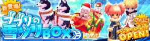冒険のパートナー「ブブリ」がとってもかわいい乗り物「ブブリの雪ソリ」が特賞のBOXが新登場しました。さらに、寒い季節にぴったりのキャラクターアバター「ウィンターコート」や、レアアイテム獲得に挑戦できる「ハンタールーレット」もオープンしました。冒険の気分を盛り上げるお気に入りのアイテムを身に着けて、よいお年をお迎えください。
