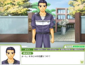 購買部で販売されている 「マラソン大会」チケットを購入(無料ゲーム内通貨)して、「使う」と、スタート地点「正門前」に体育教師の柏木先生が登場します。先生の指示をよく聞き、翔愛学園の周りを走りましょう。
