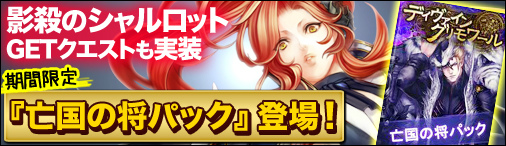 ベクターは、「ディヴァイン・グリモワール」において、本日1月14日よりカードパック「亡国の将パック」の販売、「影殺のシャルロットGETキャンペーン」および「ご新規様限定!アリス&初心者応援キャンペーン」を開始した。