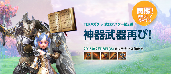 また、「TERAガチャ」にて、「神器武器アバター」が期間限定で再登場いたしました。こちらもぜひチェックしてみてください。