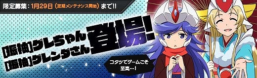 2015年1月15日(木)定期メンテナンスにて、晴れ着姿の「【振袖】グレちゃん」と「【振袖】グレンダさん」が参戦いたしました。彼女たちは限定募集から仲間にすることができ、それぞれに「【EX】シリーズ」と同等のレアリティとなる「【正月】シリーズ」が存在します。
