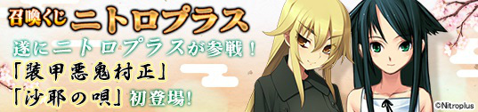 ニトロプラスの「装甲悪鬼村正」「沙耶の唄」が初登場! 新規カードが引ける召喚くじを開催中です。