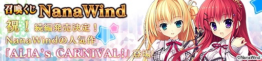 人気美少女ゲームブランド【NanaWind】の「ALIA’s CARNIVAL!が登場!新規カードが引ける召喚くじを開催中です。