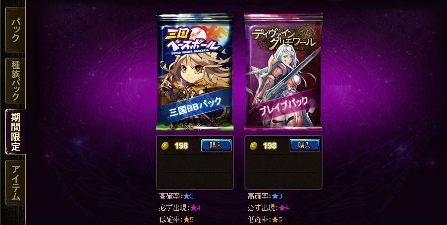 ※ブレイブパックは「ショップ」の[期間限定]タブに表示されます。