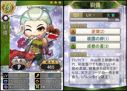 チョコレートを2,000個収集……☆3劉備 バレンタインver.(成長度B)