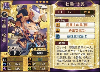 ☆4壮轟・徐晃(成長度A+)