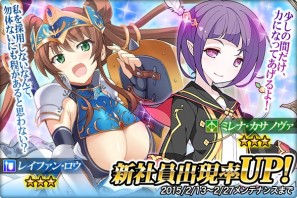 DMMゲームズは、「かんぱに☆ガールズ」において、本日2月13日に新キャラクター「レイファン・ロウ」「ミレナ・カサノヴァ」を実装、「新社員出現率アップキャンペーン」を開始した。