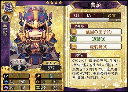 | G4 | 我が子房(2) | 試合開始時、味方の「魏」選手1人につき、味方の「魏」選手の力量が2%上昇。 |