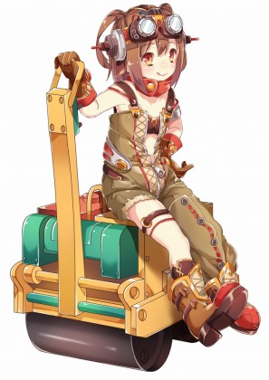 ハンドガイドローラーだよ。またの名を振動ローラーって言ってね、重くて幅広のローラーを振動させながら動かして行けるの。重さと振動のダブル効果で、地面をがっちり押し固めることができるんだよ!どう、すごいでしょ?すごいでしょ~?