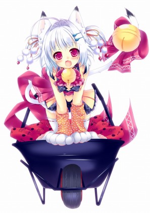 ワタシ、猫車二輪と言いますニャ。車輪が二つに増えて、資材を引っくり返す危険性が減りましたのニャ。荷台も広々としてて、座り心地が抜群ですニャ。はぁ~、くつろぐニャあ……。