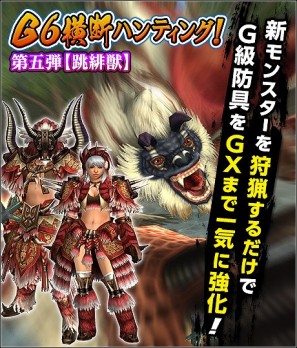 本日より、G級武具の強化素材など様々な報酬を獲得できるゲーム内イベント「G6横断ハンティング!第五弾【跳緋獣】」を開催いたします。