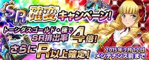 本日より、「SR4倍+R以上確定キャンペーン」期間限定で開催!期間中は、トーシダスゴールドでSRの排出率が4倍になり、さらにR以上の闘士カードが必ず排出されます!超強力な闘士をゲットする大チャンス!