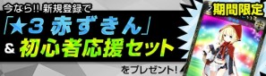下記の期間、新規にゲームを開始された方にもれなく「赤ずきん(★3)」と、「初心者応援セット」をプレゼントする、「ご新規様限定!赤ずきん&初心者応援セットプレゼントキャンペーン」を開催いたします。