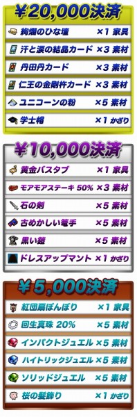2015年3月12日(木)のメンテナンス終了後から2015年4月9日(木)メンテナンス開始前までの間、一度に5000円以上の課金決済をされた方に素敵なプレゼントを致しております。