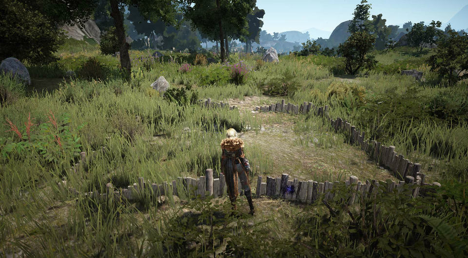 「採集」では、フィールド上に存在する“薬草”や、“きのこ”、“鉱石”・“丸太”といった様々な素材を取得することができます。その「採集」の中に、「家庭菜園」という要素があり、こちらは村や街以外の土地に「フェンス」を設置することで色々な作物を収穫することができます。
