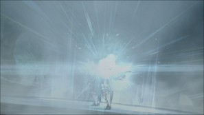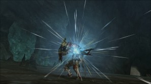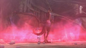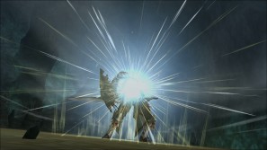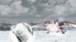 | 強烈なハルドメルグのブレス攻撃! ブレスの着地点に流体金属が波紋のように広がる。 | 上空からの突進!喰らえば吹き飛んでしまうだろう。 |