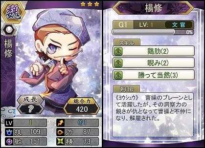 流浪の名将「楊修」が目撃されました!ごく短い期間だけの滞在のようですが、并州を探せば出会う事ができるかも…?