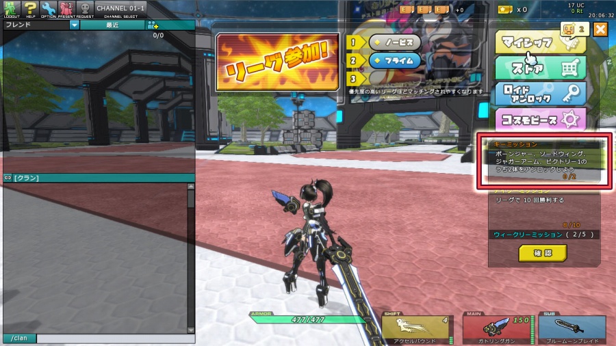 画面右枠がキーミッションです。キーミッションを進めていく内にリーガーランクが6以上となり、プライムリーグに参加することができるようになります。