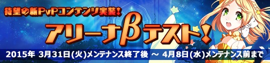 期間中に新機能「アリーナ」のβテストを開催します。一定回数参加してくれた方全員に参加報酬をプレゼント!