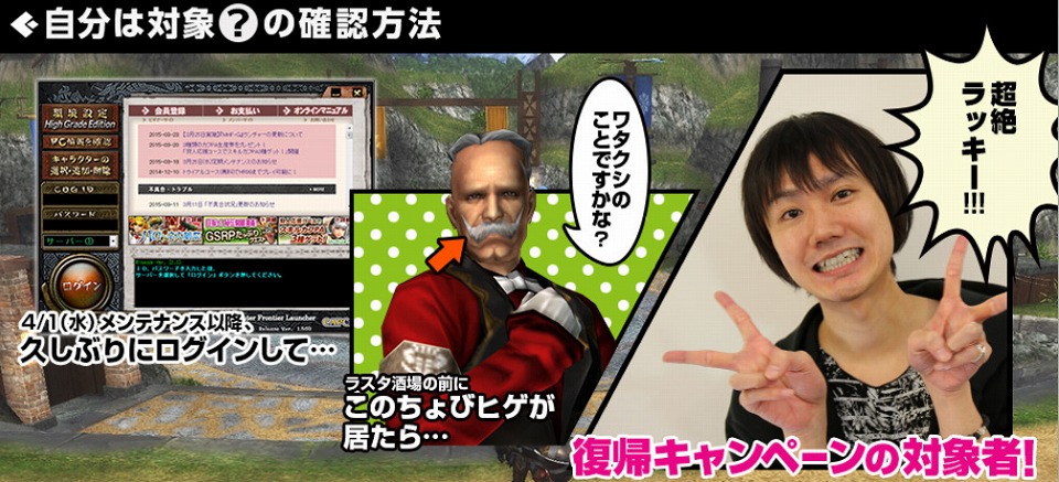 1.最後のログインから90日以上経過している復帰ハンターのお客様
