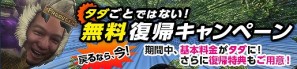 久しぶりに「MHF-G」を再開する方を対象とした「タダごとではない!無料復帰キャンペーン」を、本日より実施致します!