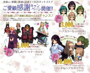 ECOネットストアの商品を合計3,000円以上購入抽選で200名様に貴重なヘアカラーが詰まったゲーム内アイテム「ヘアカラーセットBOX」をプレゼント。